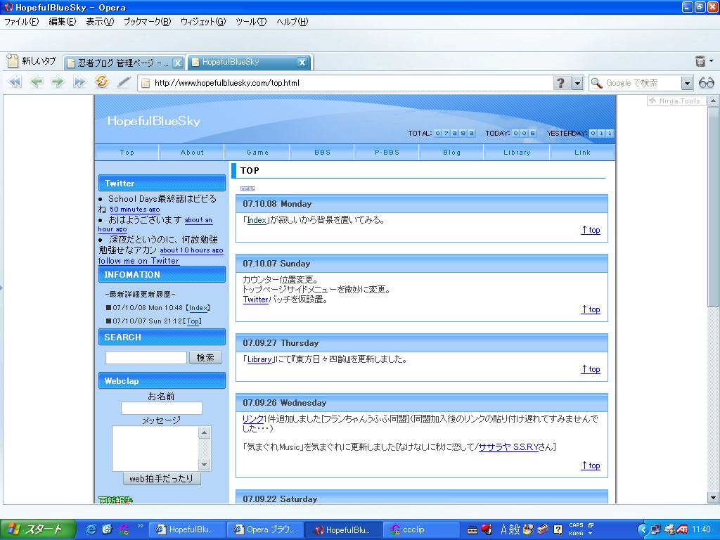 トップページ左上部にてTwitterバッチ(仮)を設置してます。